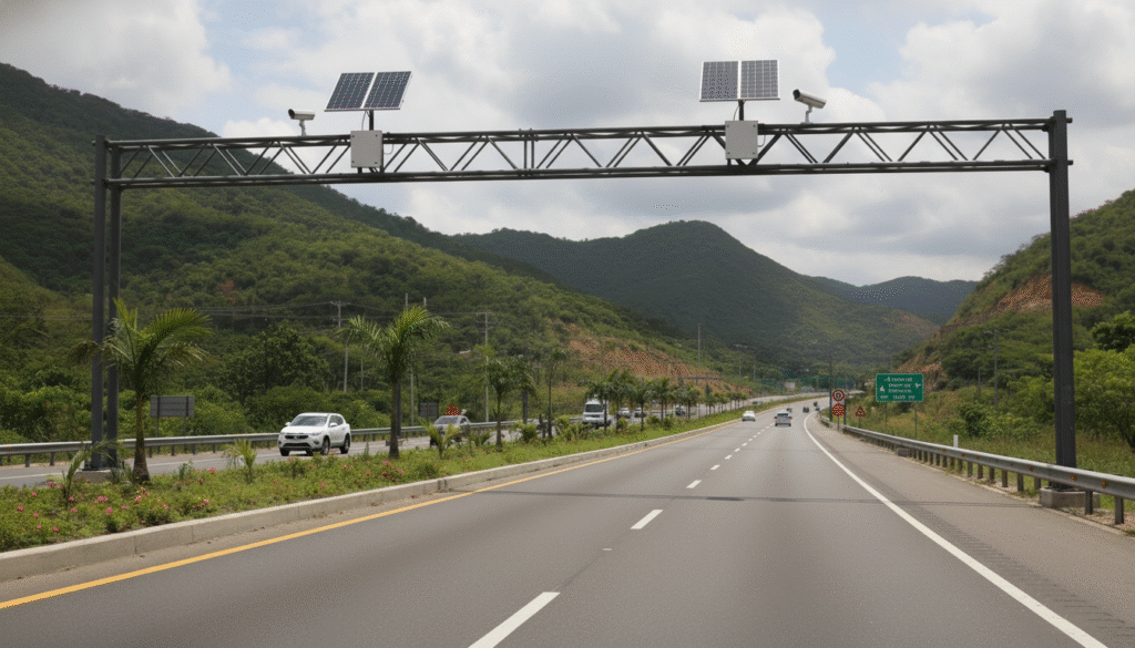Pórtico Inteligente: Cuenta con autonomía total gracias a su sistema de energía solar integrado.